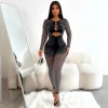 Women Sexy Long-Sleeved Hollow-Out Slim-Fit One-Piece Knitted Jumpsuit